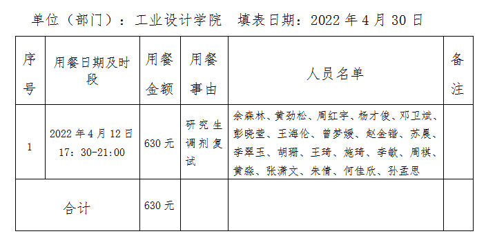 湖北工业大学加班(值班)误餐补助台账(公示表) 单位(部门):amjs澳金沙门线路首页 填表日期:2022年3月31日 序号 用餐日期及时段 用餐金额 用餐事由 人员名单 备注 1 2022年3月26日 8:00-18:00 690元 研究生复试 熊静...