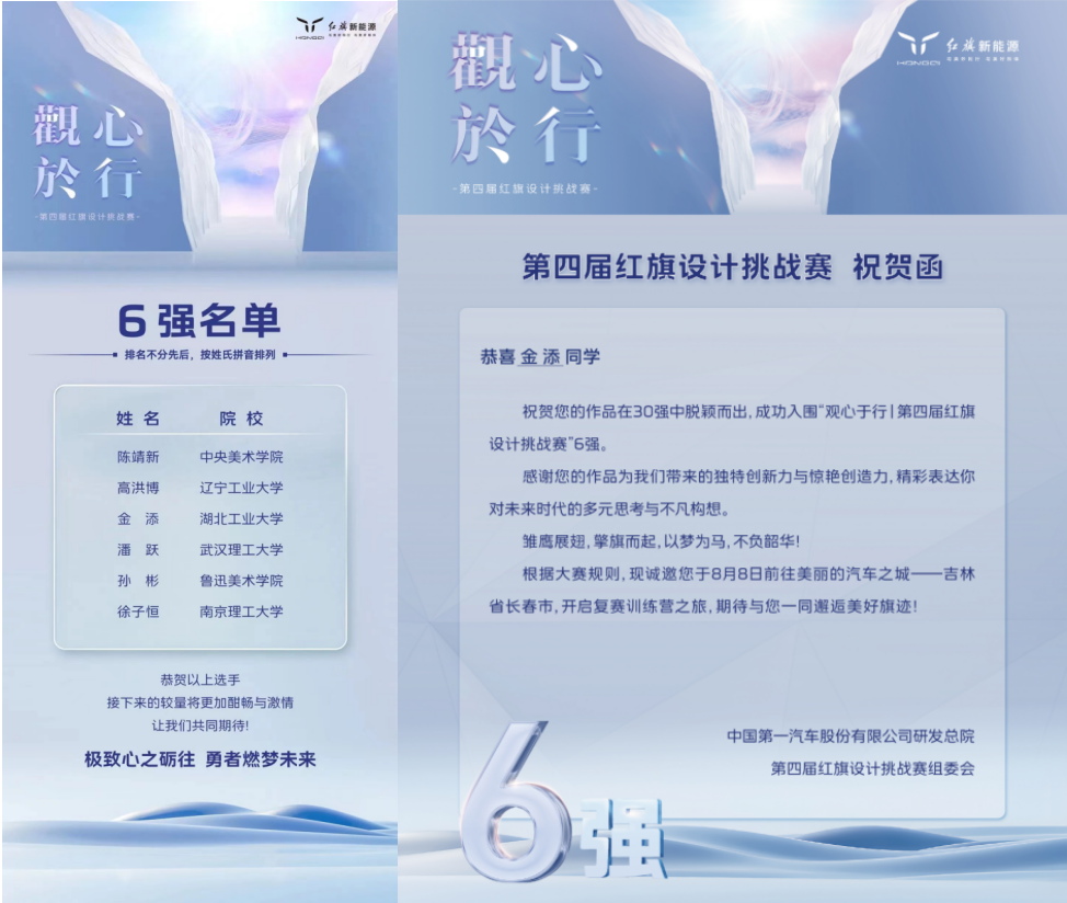 近日,amjs澳金沙门线路首页再次收获竞赛捷报,由邓昭副教授指导、研究生金添设计的作品,在第四届红旗汽车设计挑战赛中以前三名的成绩入围全国6强。红旗汽车为推动品牌设计向上、吸纳储备优秀设计人才、为青年设计师搭建一个自由展示的平台,特面向全球举办本次...