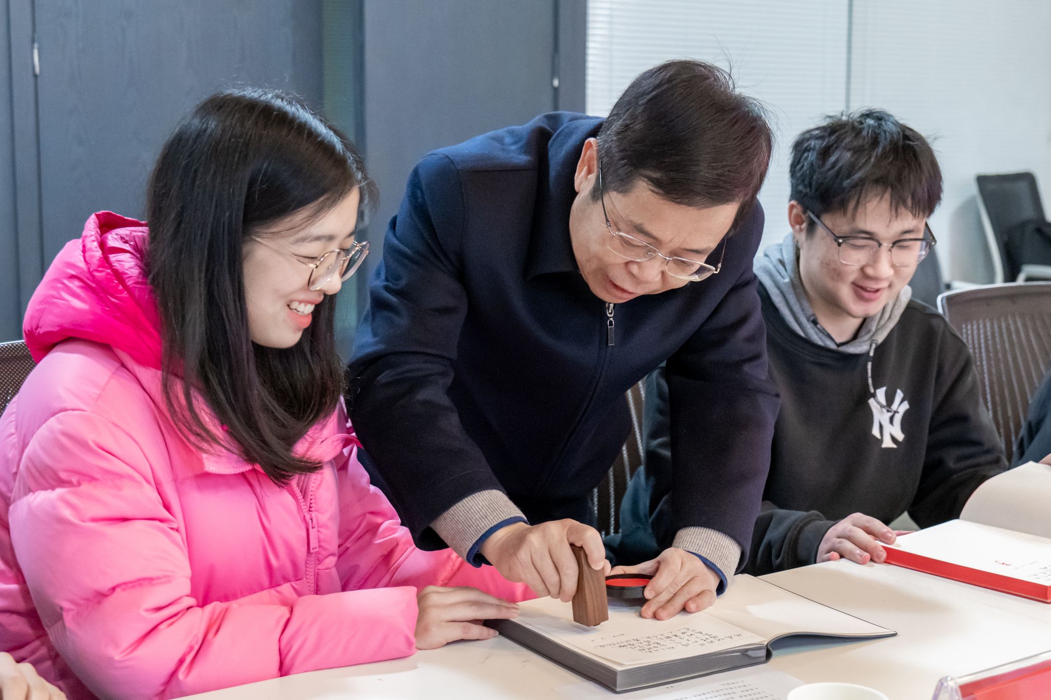 随后,陈自才和学院领导班子一起为考研学生代表赠送承载领导老师们浓浓情谊、美好祝愿的暖心礼物,一份写满鼓励的专属定制笔记本,陈自才现场为大家加盖寓意成功“上岸”的纪念章,预祝大家一战成硕、金榜题名、心想事成!