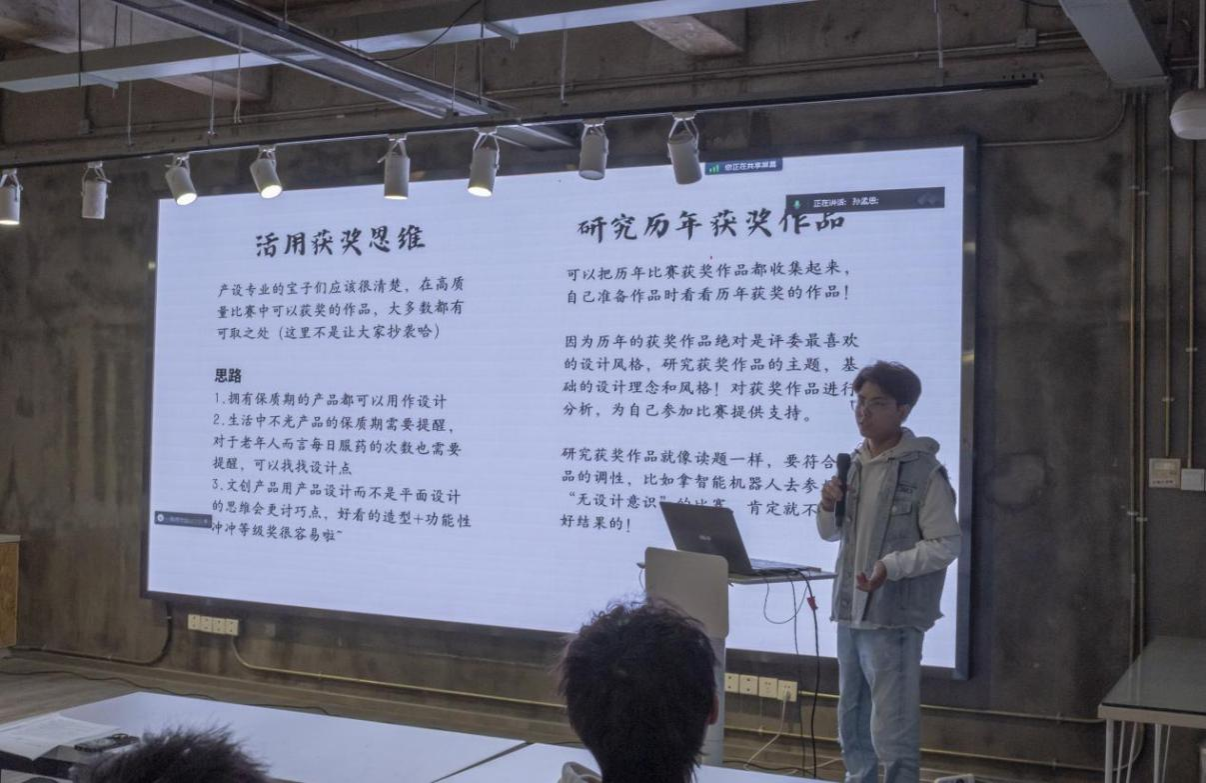 江驭鹏同学在研究生学习期间荣获了包括IF设计奖、IDEA设计奖等在内的众多国内外设计大奖。他向大家分享了他在参与设计领域重大赛事的参赛经验。