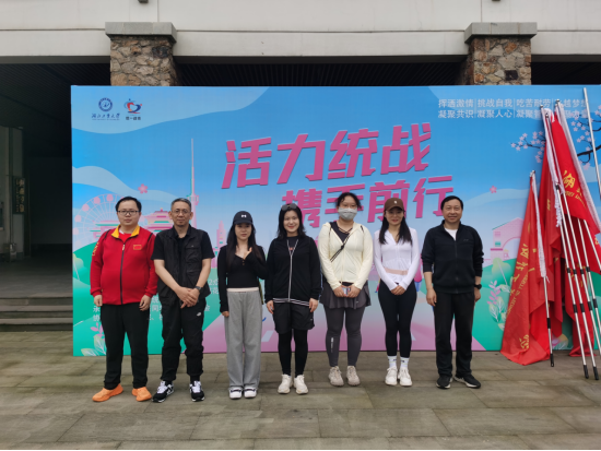 4月13日上午,第六届“活力统战 携手前行”徒步比赛活动在东湖绿道顺利举行。amjs澳金沙门线路首页党委书记王地国与院长邓卫斌领队,一共七位老师并全程参加徒步活动。