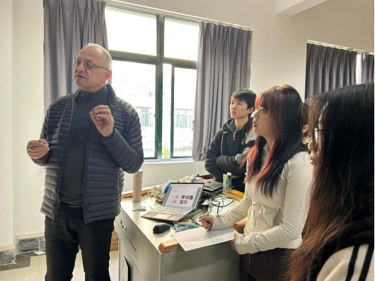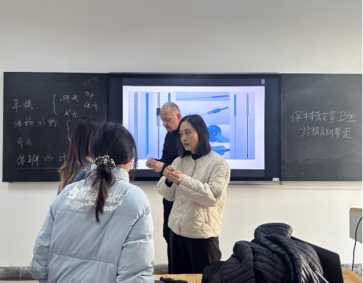 Andreas Papenfuss 教授以其丰富的专业经验和对设计的热忱,为项目课程注入活力。他不仅提供了专业的方案点评,还细致讲解了设计细节,将严谨的德国设计理念与现代创新思维相结合,为学生们提供了宝贵的学习经验。在Andreas Papenfuss 教授的指导下,学生们体验了德国设计的严谨性,不同文化背景下设计理念的交流与融合,激发了创意灵感,提升了将创意设计进行落地的实践能力。(如图4-8)