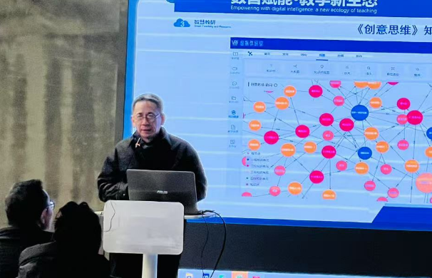邓卫斌院长以《数智赋能“教”“学”新生态》为题,带来了一场前沿的学术讲座。他详细介绍了如何在虚拟教研室中利用知识图谱开展教学研究,内容详实且富有洞见,不仅阐述了知识图谱的搭建过程,还全面介绍了虚拟教研室在在课程设计、教学资源共享、师生互动等各方面的应用。