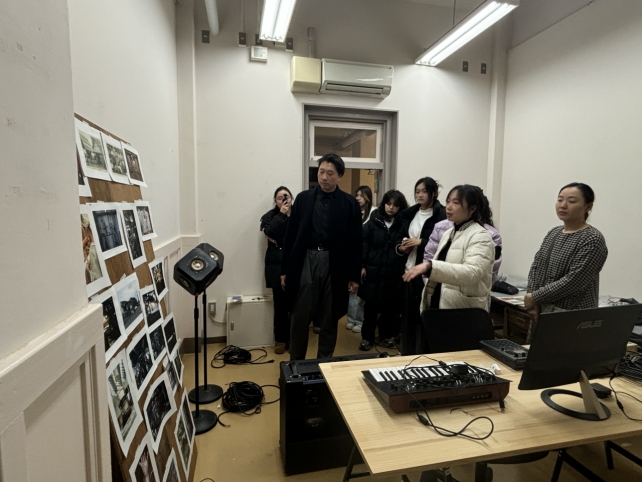 结束创客中心的活动后,师生一行人在日本友人陪同下来到位于浜松市中心的Kamoe艺术中心。中心协调员女士热情接待了大家,带领大家参观了艺术中心建筑,介绍了艺术中心等驻留艺术家工作室,对外展览交流活动空间等。这座艺术中心是一栋历史建筑,曾隶属于浜松市警察局,整体呈现和式装饰艺术风格,建筑保存完好,师生们感受着浓厚的历史与文化艺术氛围。
