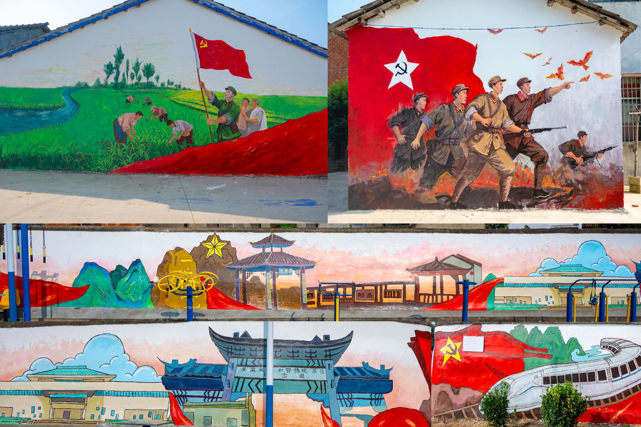在红安这片红色热土上,红安分队精心策划了多项实践活动。他们深入七里坪八一村和长胜街等“红色圣地”,寻访革命足迹,传承革命精神。在七里坪镇八一村,实践队克服时间紧、任务重的困难,巧妙融合“红色文化”与“乡土文化”,高质量完成总面积达200平方米的主题墙绘,以设计助力美丽乡村建设。同时,根据乡村经济发展之需,实践队聚焦红安县瑞沣种植养殖专业合作社发展需求,主动学习,为其核心农产品打造了四套系列化包装设计(橙色款、红金色款、红色款、黄色款),并帮助公司完成景观亭建筑方案、入口将军形象墙、“红安六珍”展示图及“二十一加”商标设计,以设计赋能红安产业振兴,活化乡土文化资源。